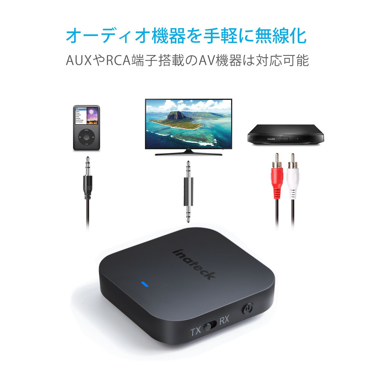 Product body, Japanese instruction manual, RCA male pair 3.5 mm AUX female cable,