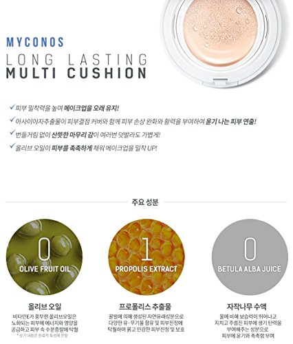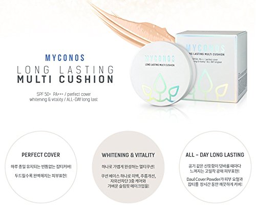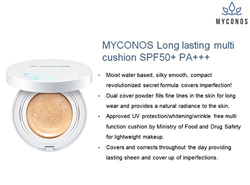 -. Feature : Introducing: Myconos Cosmetics. A New Luxury Korean Beauty Brand with it's first magic Cushion Compact. / Liquid BB CC foundation liquid infused through an innovative sponge that delivers the perfect amount of cover. / The luminous whitening formula provides sheer to medium coverage for your face. / #21 Natural Beige color, box includes 1 extra magic cushion compact refill. / Long lasting, anti-wrinkle, whitening, perfect cover, moisture control and SPF. Safe for sensitive skin and does not clog your pores.
