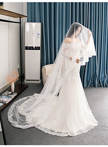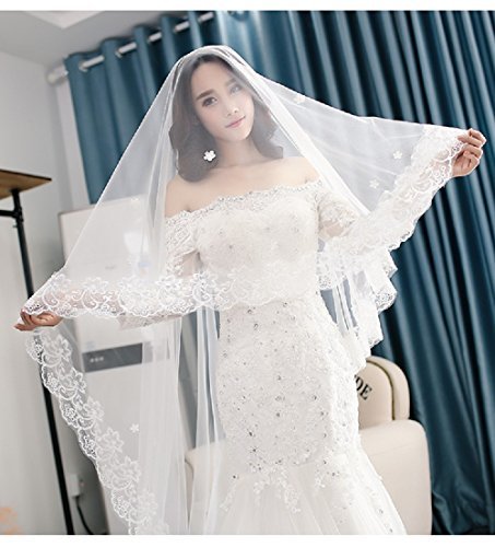 -. Title : 桜の雪  花嫁ベール ブライダルベール 長いベール ロング 単層ベール 花嫁用品 純白 レース刺繍 ホワイト1.5m 2m 3m 4m 5m
