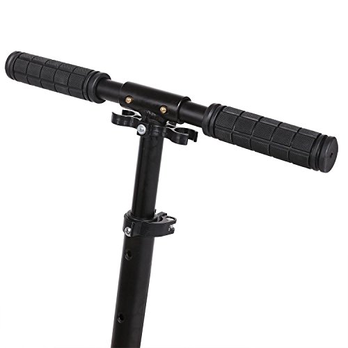 -. Feature : 1-Seconds Easy-Folding Mechanism?No assembly request, the adult kickscooter with 1-Seconds Easy-Folding Mechanism, suit for quick storage and transportation?US Stock, It's the perfect and easiest way to commut and unlike a bicycle there are no restrictions to carry on the tube, train or bus / Front & Rear Shock-Absorbing System?High durable 195mm big rubber wheels with Dual Suspension System, precision ABEC-7 bearings reduce vibration and make a smoother ride and creates an incredibly smooth glide, perfect for City/Urban/Suburban pavements / Patented Rear Fender Brake?The aluminum alloy scooter features an easy to access Anti-Rust Paint Foot Rear Brakes which when pressed brings the scooter to a speedy secure stop. Large aluminum reinforced brake pedal is easy to use for quick and firm breaking fast / Adjustable Telescoping T Handlebars?Adjustable handlebar with soft rubber comfortable hand grips and 3 level height adjustable, range 90-100cm/35.1-39 inch, Suit for adult, teens and kids age 12 up / Sest Supports 220lbs Weight?High density durable aluminum alloy frame and 18"*5.5" enough foot space and low to ground design reinforced heat-treated aluminum alloy deck with full-deck grip tape make this scooter's sest weight 220lbs(100kg) and max supporting weight 300lb (136kgs)