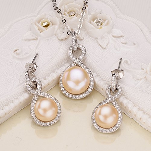 CZ Color:Clear, Freshwater Cultured Pearl Color: Pink; Adjustable Necklace Length: 17.7-19.1in, Pendant Size: 0.5in by 1in, Earrings' size: 0.4in by 0.9in; Total Weight: 6g; Necklace's Freshwater Cultured Pearl size: 10mm, Earrings' Freshwater Cultured Pearl size: 8mm, For details, please refer to the fourth picture of this product.