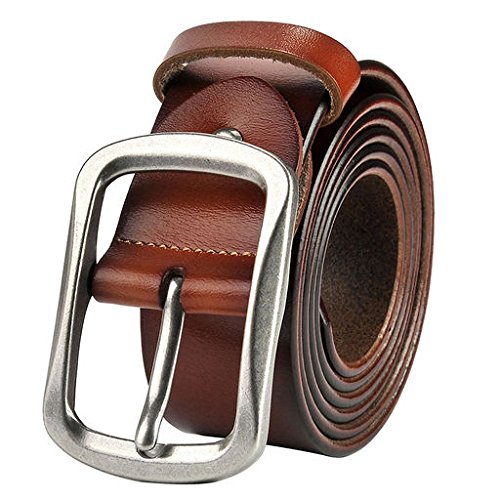-. Feature : Mens Retro Genuine Leather Metal Buckle Belt / 51.2''/130cm long,1.5'/3.8cm wide,Suitable for US Pants Size in 39''-42'' / Removable Metal Gold and Silver Buckle,Trim to Fit.Easy to Customise the Length to Suit Your Size / Comes with Leather Loop,Fully Adjustable / Buy Different Belts with Different Buckles,Change Everyday Outfits with Interchangeable Buckles