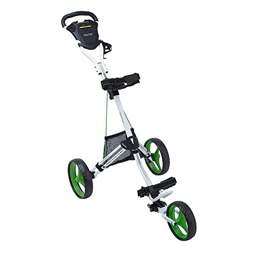 The Bag Boy Express DLX Pro Push Golf Cart combines a lightweight, sturdy frame with with a simple two-step fold and a push on/off brake system.This push cart features a quick-release adjustable handle with four height options, an integrated smart phone holder and a quick-grab beverage holder. Another cool feature is the deluxe scorecard holder wit ha pencil holder and storage compartment.