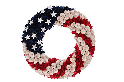 19 Inch Wood Curled Roses Patriotic Wreath in Red, White & Blue - Front Door Wreath