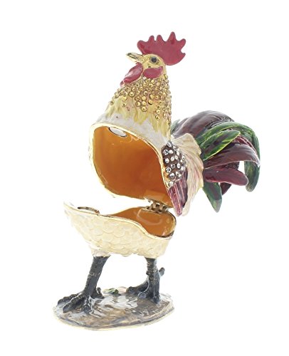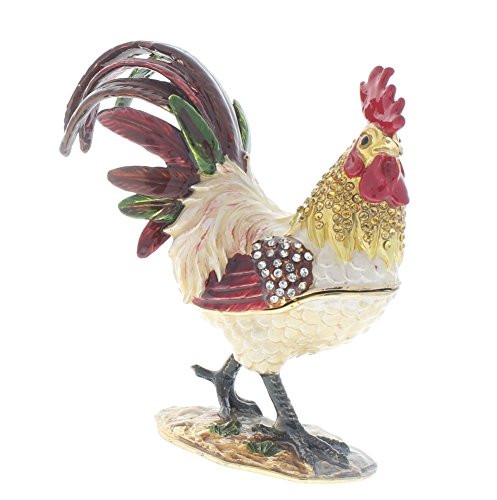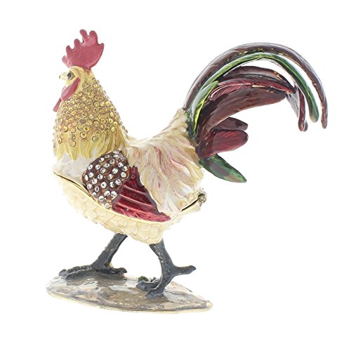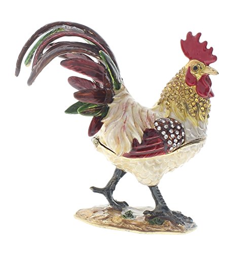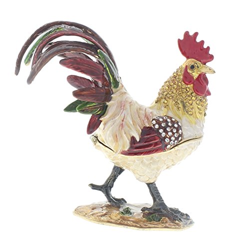 Ciel Collectables 1013399A Rooster Trinket Box with Hand Set, 4.25" x 3.75" x 1.75"