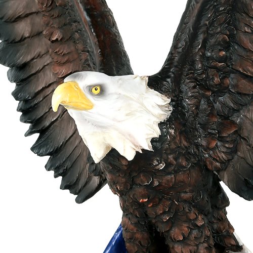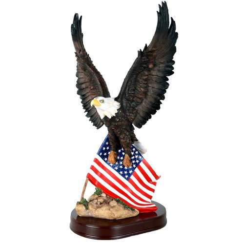 American Eagle with American Flag Stars and Stripes Old Spangled Banner Statue Wood Base Figurine Home Decor Gift 18 Inch