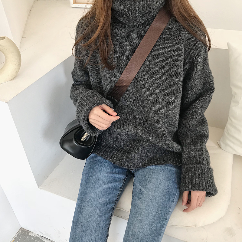 トレンドのくすみ色を使い、ざっくりとした感じのリブデザインがポイントです!