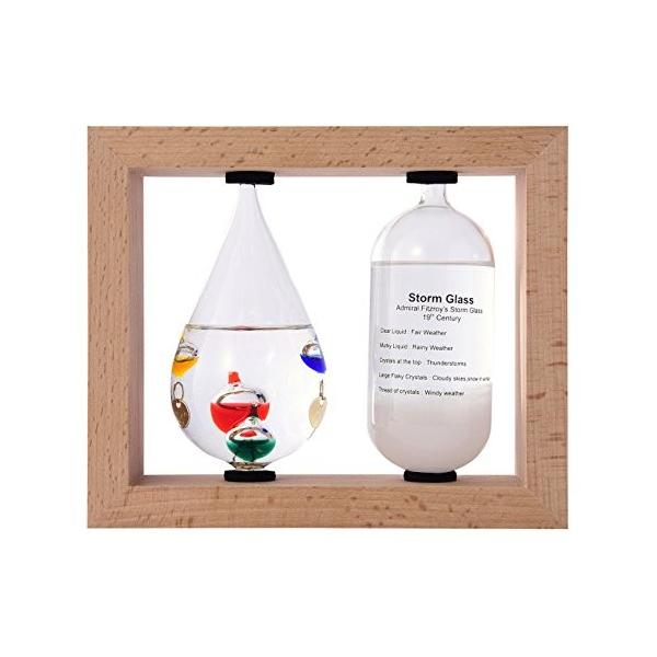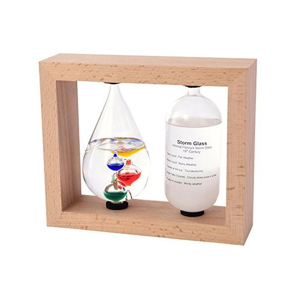| 商品の説明 | 【Fun Science】不思議な化学変化や現象をインテリアとして楽しめるシリーズ。 天気の悪い冬の日に、変わりやすい春の空を見ながら、うだる暑さにふと窓の外を見ながら、寒さ忍び寄る季節にどんな季節にも窓辺に置いてふと空を眺めるきっかけにどうぞ。 ストームグラス:気温や気象状況によってガラス内部の液体や結晶の様子は変化します。 19世紀初頭にはヨーロッパにて航海時に気象状況を予測するのに使われていました。 当時はガラス管の液体や結晶の様子から海上での気象を予測し、安全な航海に役立てたそうです。 英国海軍のロバート・フィッツロイ提督が、この装置を詳細に研究したことから別名「フィッツロイの気象計」とも呼ばれております。 実際には気象状況と液体内部の結晶化の関連性については、科学的には解明できておりません。 正確な気象状況を予測するためにはお使いできませんが、周りの気象環境の変化によって液体と結晶がユニークに変化しますので、観賞用のオーナメントとしてお楽しみ下さい。 温度計:ガリレオ・ガリレイが発見した原理を使った温度計。 室温の変化により、ガラス球体が浮き沈みします。 浮いている球体についているプレートで目安の温度を読み取ります。 |