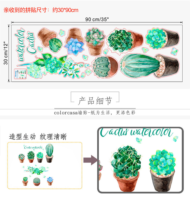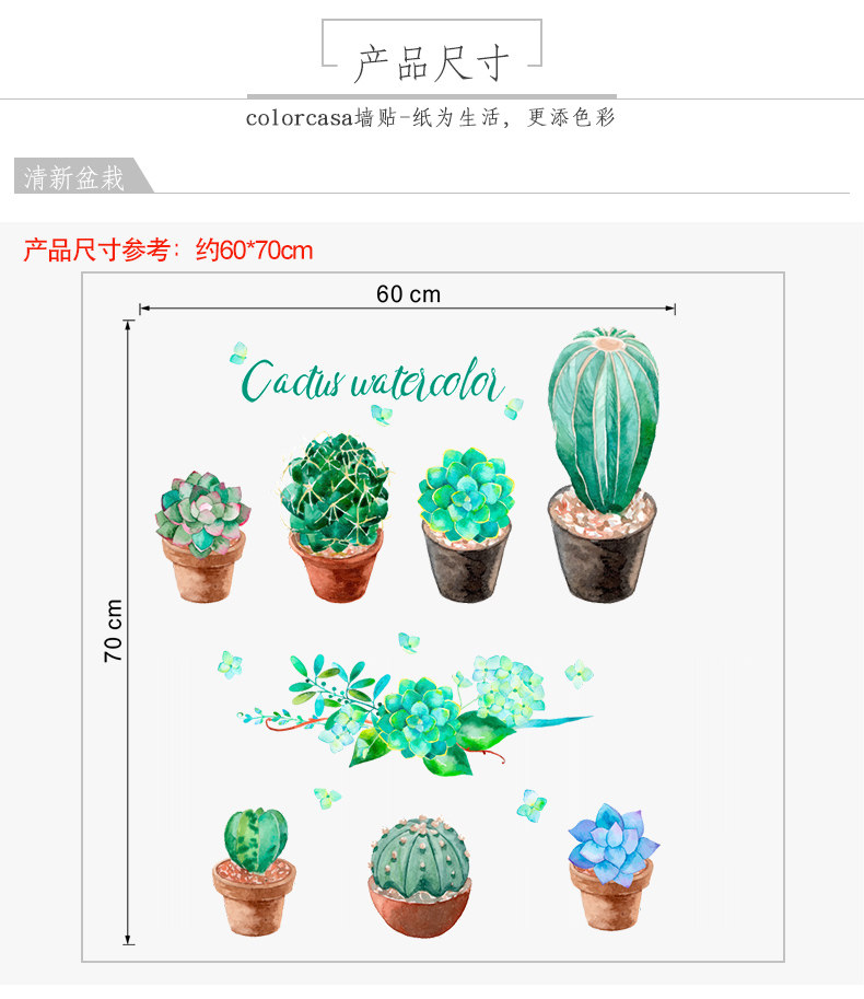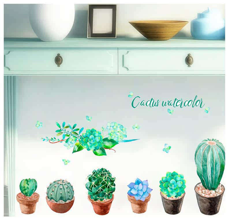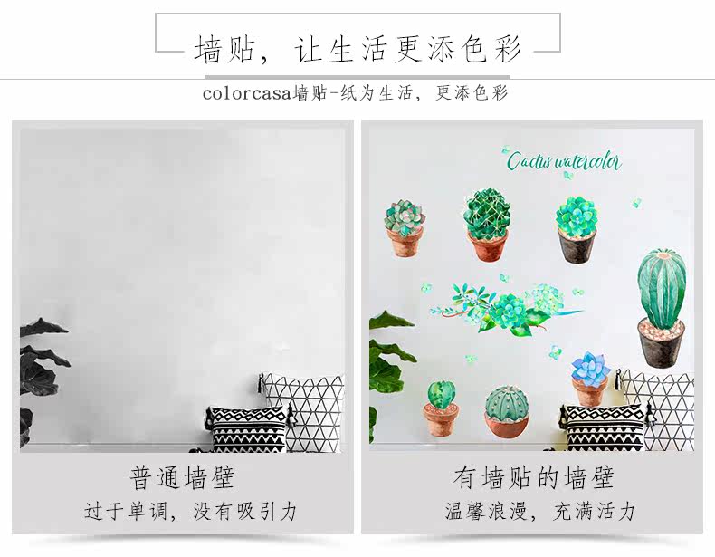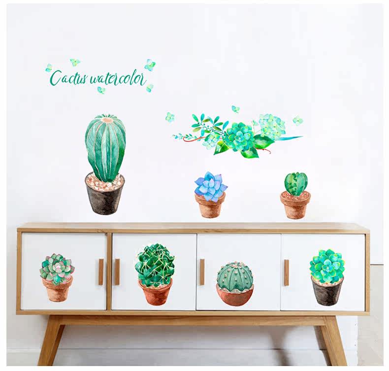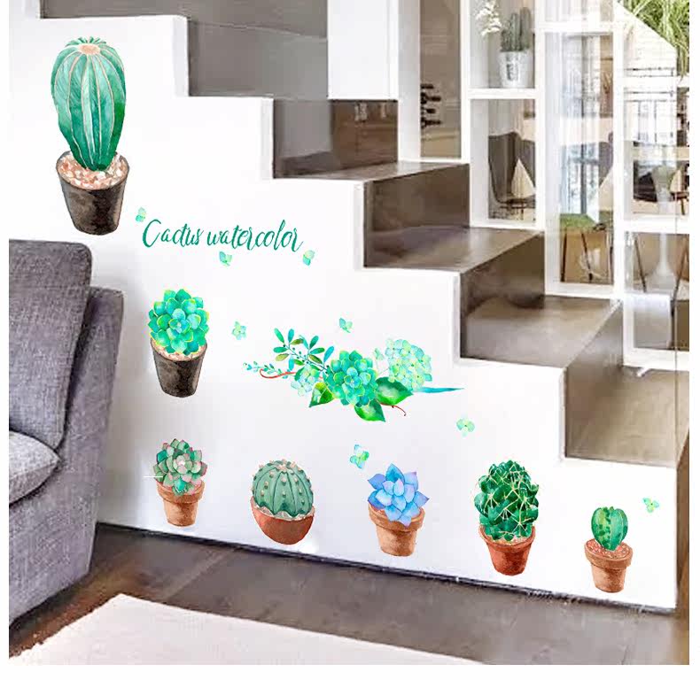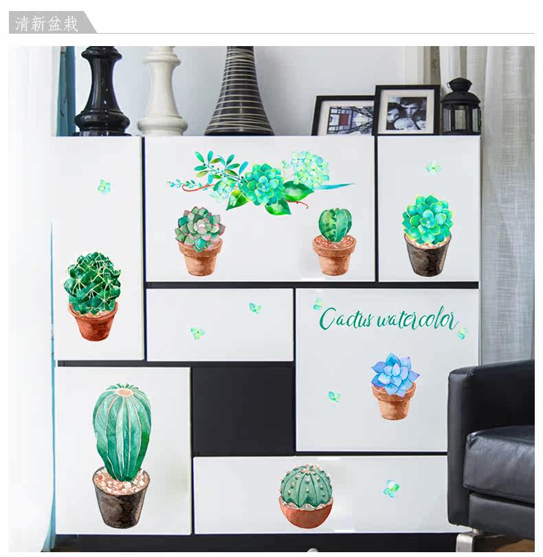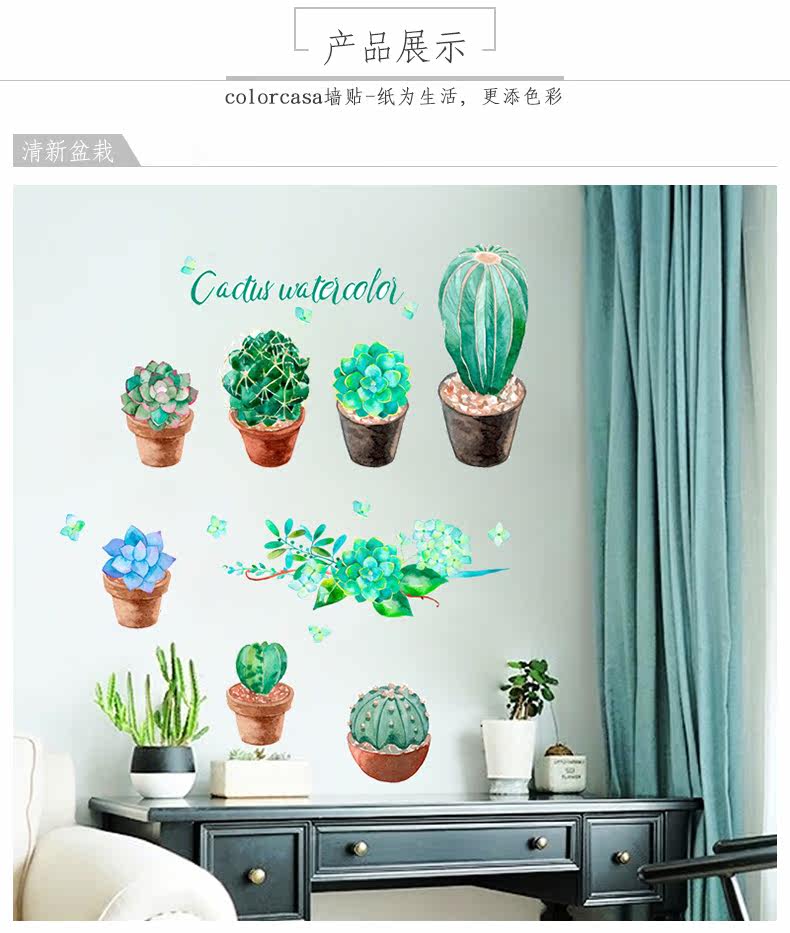 客厅卧室墙面装饰贴文艺小清新绿色植物绘pvc环保可移除自粘墙贴