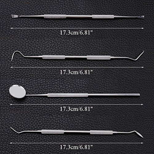 -. Binding : Misc. -. Brand : FlorisHome -. EAN : 7700456758212 -. Feature : This 4 piece tarter scraper and remover set includes: 1 scraper, 2 scaler, 3 mirror, 4 probe. Each measures 6.81" long. / Dental disease can actually lead to problems with your pet's organs. You need regular dental care and you brush your teeth everyday - why wouldn't your pets? / Used to remove harmful tartar accumulation. Octagonal handle is knurled to improve grip. / Wash and dry after each use. / All Stainless Steel and packed in leather carry case just like picture shown. -. Label : FlorisHome -. Manufacturer : FlorisHome -. MPN : Tools-000309 -. PackageQuantity : 1 -. PartNumber : Tools-000309 -. ProductGroup : Pet Products -. ProductTypeName : PET_SUPPLIES -. Publisher : FlorisHome -. Studio : FlorisHome -. Title : FlorisHome Tooth Scaler Tools Kit (Perfect for Cats and Dogs) - Double Header Tarter Remover/scraper/Dental Mirror,Stainless Steel
