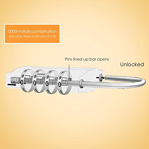 -. Feature : Features: Combination is easy to read,clearly visible; material sturdy, durable and keyless. / Install: Easy to set your personalized combination and reset. / Wide on use: These are powerful combination locks,they can be used indoors and outdoors,E.g. all kinds of wardrobes and boxes as well as lockers,tools,lage and travel bags and so on. / Keep your items completely safe: High security,the 3 or 4 combination codes are very safety.Provides 10000 combinations,other people can not open easily. / Each pack includes: 4 different dimension of the lock in a package,the biggest one lock consists of 4 bit password,the other three locks have 3 bit password,they will meet your different demands.