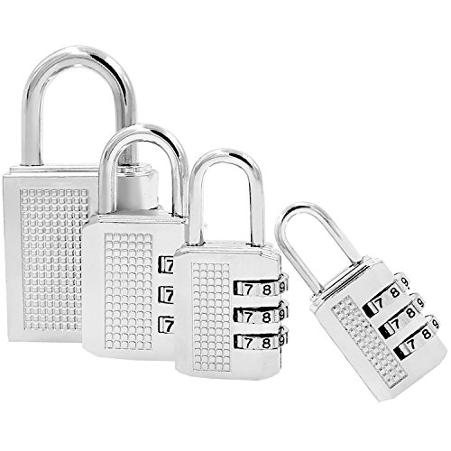 -. Title : 4 Pack Combination Padlocks by DigHealth(TM), Weatherproof, Keyless and Multiple Size, 3 or 4 Digit Code Locks, Resettable Number Password Locks for Gym & School Lockers, Travel Lage Suitcases