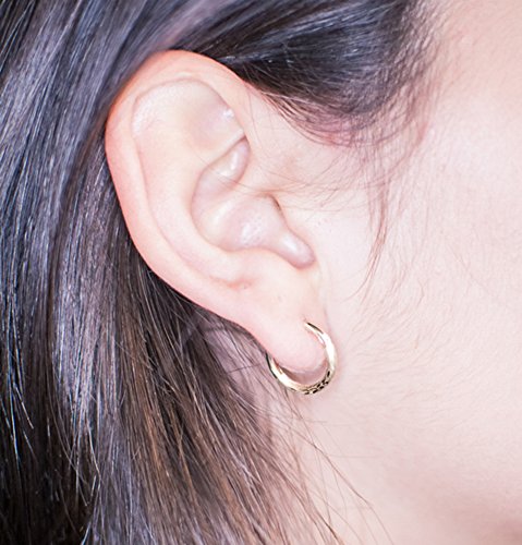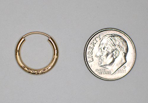 Looking for something simple, elegant, and easily wearable for your day-to-day life? Enjoy this stylish and easily affordable pair of 14k gold diamond cut endless hoop earrings with eye-catching satin finish details. These continuous wire hoops are extremely versatile, allowing you to wear them with any outfit at any time of the year. The endless wire hoop is secure and comfortable.These earrings are 14k yellow gold. They are NOT plated, but have a pure gold body with a hollow interior. Every piece comes with an authenticated 14k stamp.