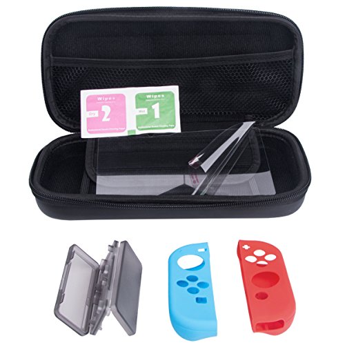 -. Title : RundA Hard Carrying Nintendo Switch Case with 10 Built-in Game Card Holders and Tempered Glass Screen Protector,Game Console Accessories Protective Storage Bag