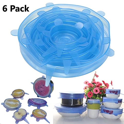 6 Pack—Silicone Stretch Lids Reusable —Food Covers, Round, Rectangle, Square Shapes, Platters, Dishes, Bowls, Pots,