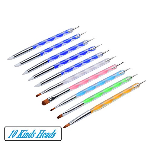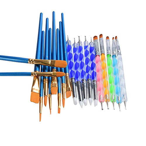 - What you get: Dotting tool with brush head x 5, Dotting tool with rubber head x 5, Paint brushes x 10