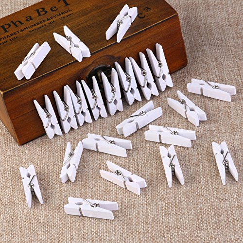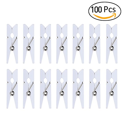 WINOMO Mini Wood Clothespins with Spring Photo Paper Peg Painted Pin Craft Clips for DIY Project 3.5CM0.7CM 100pcs/Set (White)