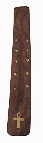 Handcrafted Wooden Incense Holder with Brass Inlay with ANKH Design