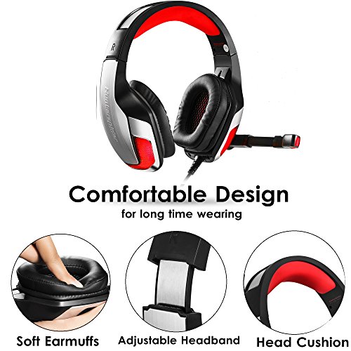 [Extremer Komfort] Professionelles Gaming Headset mit super leichter Konstruktion und weniger als 380g. Weicher, komfortabler und verstellbarer Kopfbugel und weiche Ohrpolster, die keine Druck auf die Ohren ausuben und nicht uberhitzen werden. Dadurch sind die Kopfhorer auch nach langem Tragen noch extrem komfortabel. Durch den verstellbaren Bugel passt dieser Kopfhorer auf verschiedene Kopfgrossen und ist fur Frauen, Manner und Kinder geeignet.