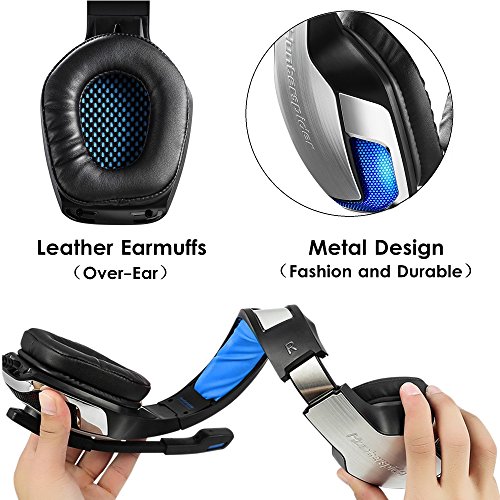 [Cooles Metall-Design] Einzigartige Lichteffekte hinter einem Metallgitter wirken cool aber nicht aggressiv und unterscheiden dieses Headset von all den anderen am Markt. Das einmalige Licht erschafft eine tolle Gaming Atmosphare. Die modische Integration von Metallelementen verleiht diesem Kopfhorer einen einmaligen Stil und macht in widerstandsfahiger.