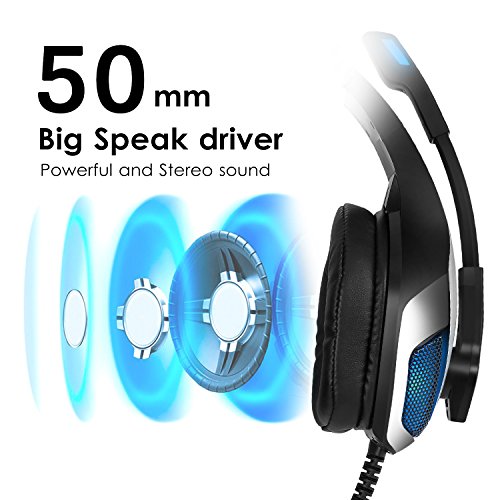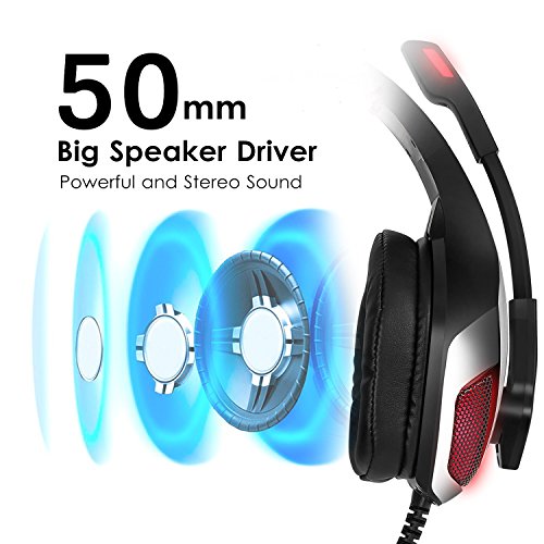 [Hohe Performance] Speziell fur Gaming entwickelt und mit grossen 50mm Treibern ausgestattet, wurde grosstes Augenmerk auf klaren und kraftigen Sound fur die Effekte in Games gelegt. Mit leistungsstarkem Stereo-Sound werden Sie sich fuhlen, als ob Sie mitten im Spielgeschehen sind. Das Headset ist optimal furs Gaming, Arbeiten, Studieren, Chatten und fur Filme, Musik, etc.