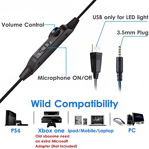 [Ausgezeichnete Kompatibilitat] Plug & Play ohne extra Treiber. Das Headset unterstutzt unter anderem: PlayStation 4, new xBox One, PC, Nintendo 3DS, Laptop, PSP, Tablet, iPad, Smartphone. Bitte beachten Sie, dass Sie einen Microsoft Adapter (NICHT enthalten) benotigen, wenn Sie das Headset mit einer alteren xBox One Controller Version verwenden wollen.