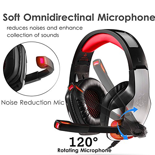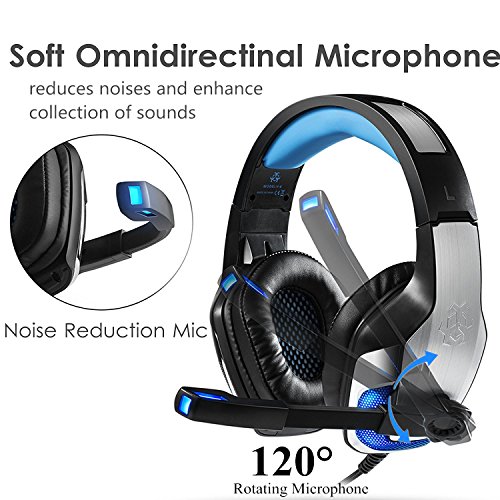 Headset Gaming Micolindun Mikrofon Kopfhorer Gamer Ultra Leicht Gemutlich Metallisch Basse Stereo Lautstarkeregler Rauschen Isolating fur PS4, Xbox One, PC, Laptop, Tablet, Telefon