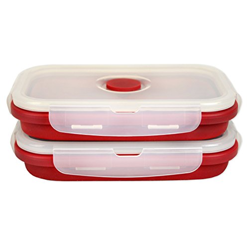 DII Silicone Collapsible, Airtight Food Storage Containers, Dishwasher & Microwave Safe, BPA Free, Snap On Lid, Set of 2, Red - Small