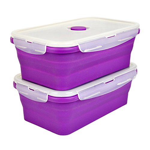 DII Silicone Collapsible, Airtight Food Storage Containers, Dishwasher & Microwave Safe, BPA Free, Snap On Lid, Set of 2, Purple - Large