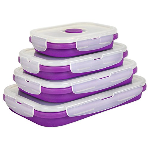 DII Silicone Collapsible, Airtight Food Storage Containers, Dishwasher & Microwave Safe, BPA Free, Snap On Lid, Set of 4, Purple - Assorted Sizes
