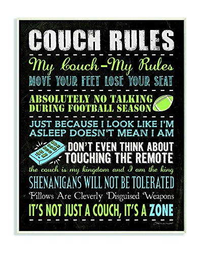 Stupell Home Décor Couch Rules Typography Art Wall Plaque, 10 x 0.5 x 15, Proudly Made in USA