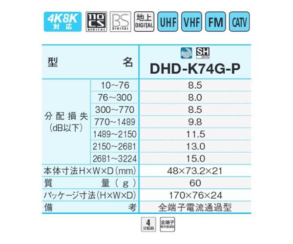 fk094igrjs全端子電流通過(全出力端子→入力端子間)仕様です(DC15V・0.5A以下)内部筐体はダイカスト製の高シールド構造の為、妨害波の影響を受けにくくなっています サイズ 48×73.2×21mm 個装サイズ:3×8×17cm 重量 60g 個装重量:90g 製造国 中国 4K・8K衛星放送を含む全ての放送に対応 全端子電流通過(全出力端子→入力端子間)仕様です(DC15V・0.5A以下)内部筐体はダイカスト製の高シールド構造の為、妨害波の影響を受けにくくなっています