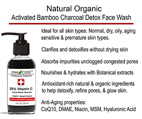 Activated Bamboo Charcoal Deep Pore Face Wash Cleanser w/ 20% Vitamin C, Hyaluronic Acid, DMAE, MSM, Botanical Extracts.