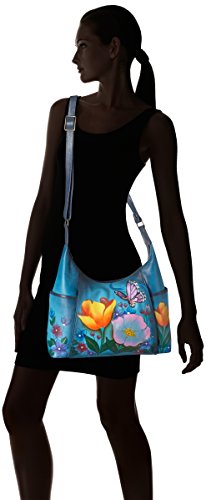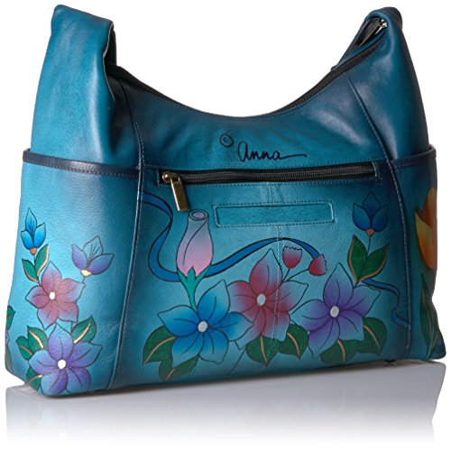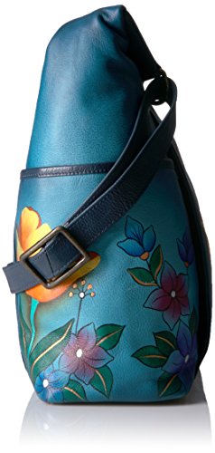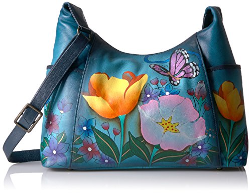 Anuschka Anna by Hand Painted Large Shoulder Bag Floral Garden Denim