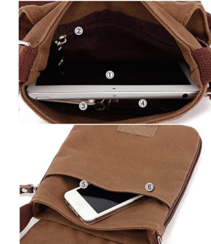 -. Title : Berchirly Small Vintage Canvas+Leather Messenger Cross body bag Pack Organizer