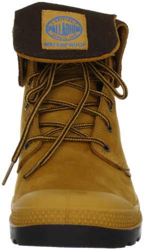 Studio : Palladium Publisher : Palladium Binding : Apparel Product Description Waterproof Oily Nubuck Leather,seam sealed. Waterproof stitching thread. Cambrelle lining absorbs perspiration, dries rapidly and breathes to let air in and moisture out. Two piece; hugging heel cup and thick die cut EVA create a comfortable Stepping Ground. One piece molded rubber outsole. New "Waterproof" woven Label on the tongue. An additional woven label visible on the turned down tongue, as well as a uniquely applied rubber patch on lateral side of both shoes on the turned down collar lining. Waterproof heel logo. 0