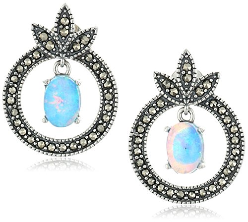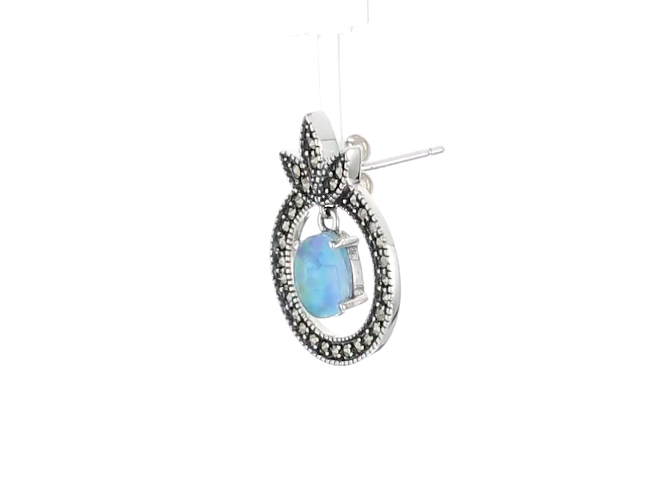 Sterling Silver Marcasite and Synthetic Opal Stud Earrings