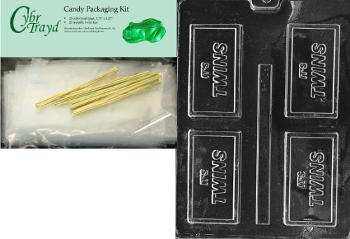 Cybrtrayd "It's Twins" Business Card Chocolate Candy Mold with Packaging Bundle of 25 Cello Bags, 25 Gold Twist Ties and Chocolate Molding Instructions