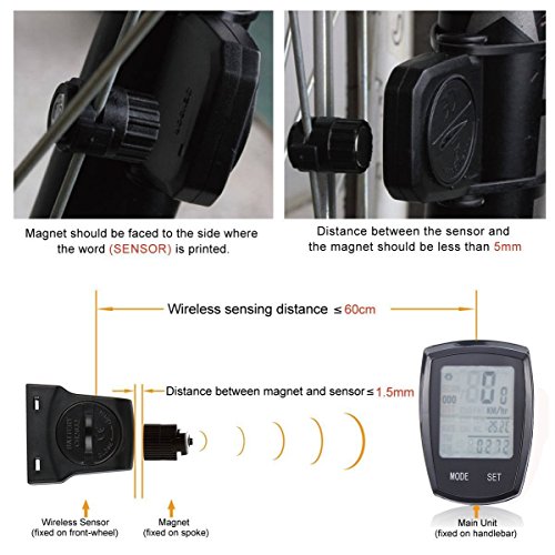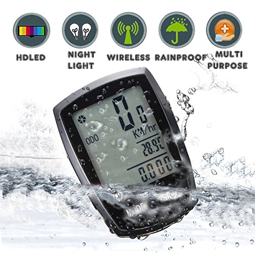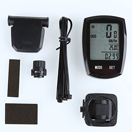 Studio : COOLWHEEL Publisher : COOLWHEEL Binding : Misc. Product Description It can be easily mounted on any direction, horizontal or vertical, suitable for Bike, Mountain Bike, Motor bike. Uses with two CR2032 batteries, screen will turn into OFF condition with only clock displays on the screen when the speedometer doesn't work after 5 mins, energy saving. 22 main functions: SPD Current Speed , ODO Meter (0.001~99999km/m), MXS Maximum speed , DST TRIP DISTANCE, AVS AVERAGE SPEED , TM ELAPSED TIME , CLK CLOCK 12H/24H , Scan show functions one by one , BACKLIGHT, SW Timer, CDD Count down distance, CDT Count down time, CAL Calories level, FAT Fat burn measurement, TEM Temperature, Low power Indicator, Maintenance alert, Adapter for KM/hr or M/hr, Wheel Circumference setting, Auto off, etc Suitable For Tire Size: 700cx38mm, 700cx35mm, 700cx32mm, 700cx30mm, 700cx28mm, 700cx25mm, 700cx23mm, 700cx20mm, 700cTubulari, 650cx23mm, 650cx20mm, 27"x1-1/4", 27"x1-1./8", 26"x2.3", 26"x2.25", 26"x2.1", 26"x2.0", 26"x1.9"/1.95", 26"x1.75", 26"x1.5", 26"x1.25", 26"x1.0", 24"x1.9"/1.95", 20"x1-1/4", 16"-2.0", 16"x1.95", 16"x1.5" Application: Mountain bike, road bikes, folding bikes, and death coasters.Perfect to use when hiking, climbing, riding and other outdoor actives. Kindly Notice: Sensor and receiver distance Not exceeded 60cm, distance between the transmitter and magnet Not exceeded 3 mm The device will auto enter to standby within 300 seconds during inactive use to save the energy. CLK Data will stay. It will start up if any button is press. 0