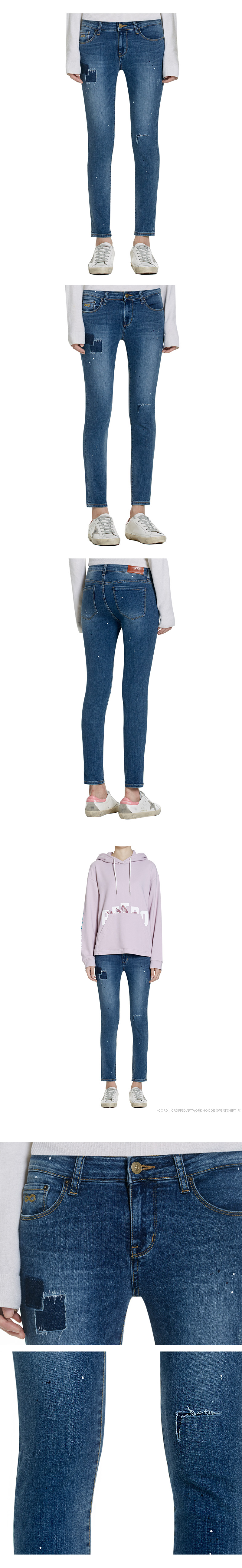 | ? | ? - 패치 포인트 중청 크롭 스키니 - 화이트와 곤색 페인팅으로 시원한 느낌과 동시에 꽉차 보이는 룩킹을 연출 - T400의 혼용율로 텐션과 복원력이 좋음 - 패치 자국과 짜집기를 하여 디테일성을 더함 - Cotton 91.5% T400 7.5% Elastin 1% - 10.5 OZ |