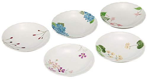 이노정봉 쿠타니야키 채색화 구곡유 5 호접시 전 (5 매세트) 풀꽃 K4-122