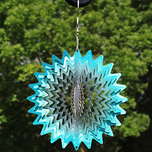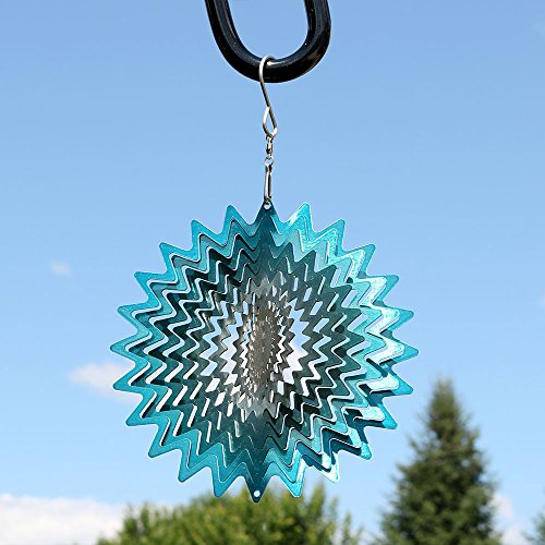 Sunnydaze 3D Whirligig Blue Star Wind Spinner with Hook, 6-Inch