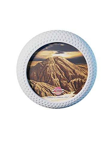 - Unique Golf Motif 6 inch round wall hanging picture frame. White dimpled golf ball frame will be perfect to display photographs of your favorite golf foursome, or capture the memory of your best round.