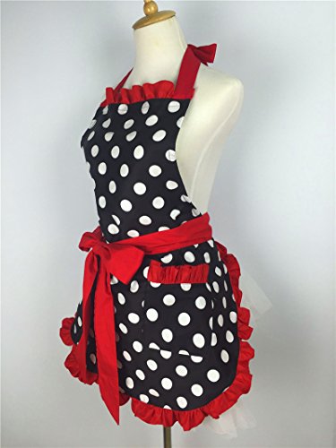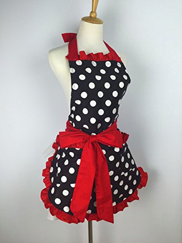 Aprons for Women Retro Vintage Aprons, Cooking Kitchen Aprons Plus Size with Extra Ties & Pocket 28.3 x 24.4" (Red)