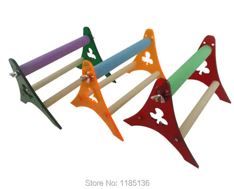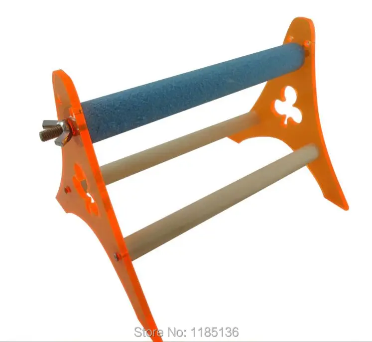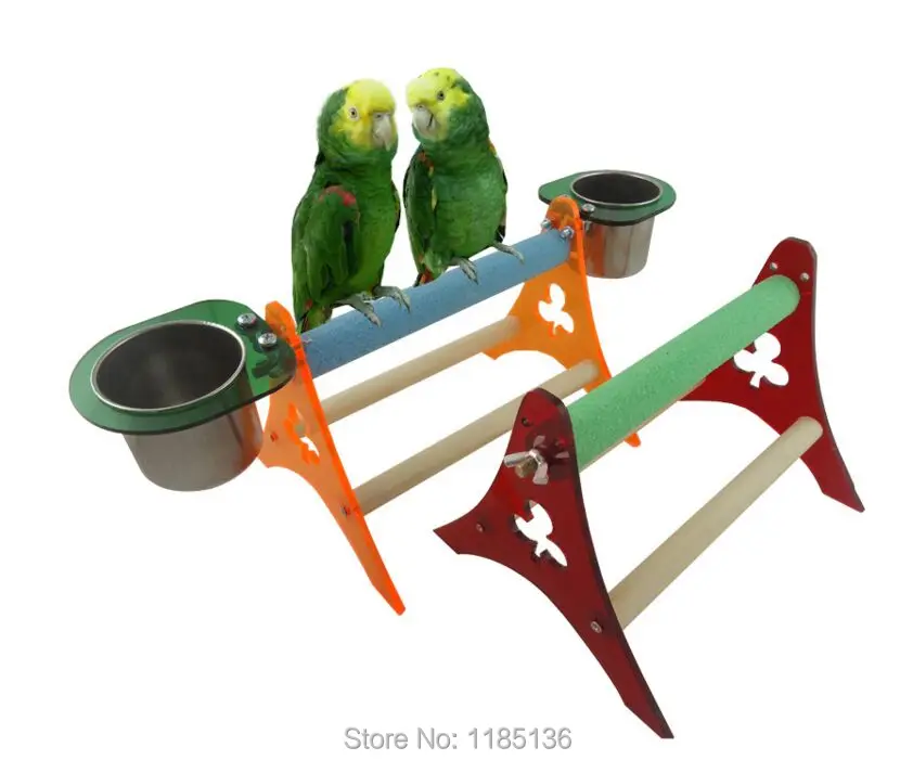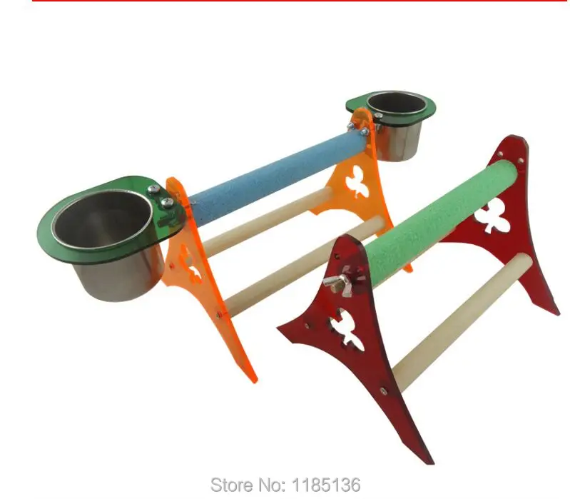 Material:Wood perch+Acrylic Stand+Stainless steel cup