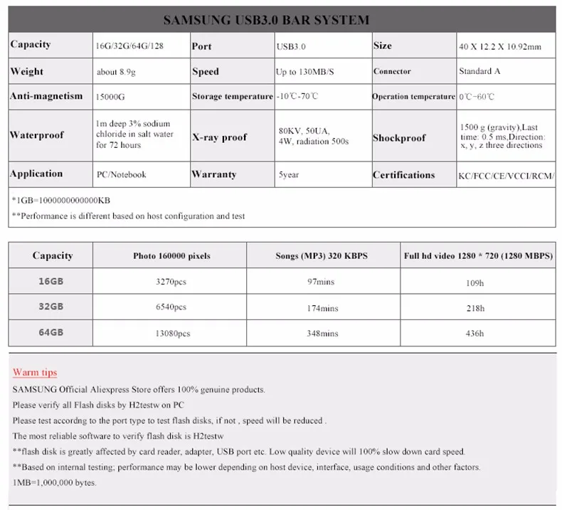 Capacity :32GB/64GB/128GB (1GB=1Billion byte) * Actual usable capacity may be less (due to formatting, operating system, applications or otherwise)u0026nbsp;