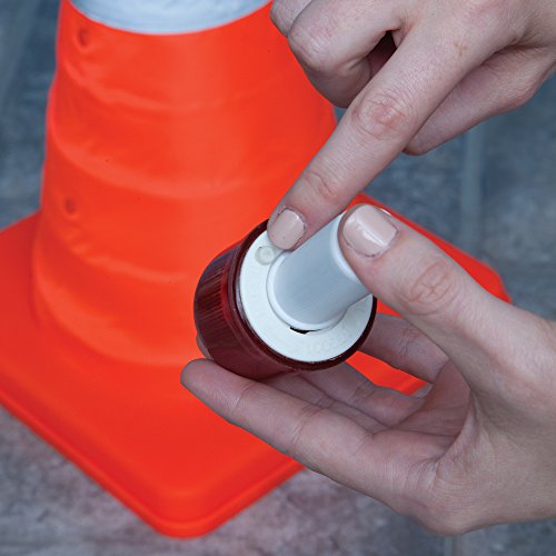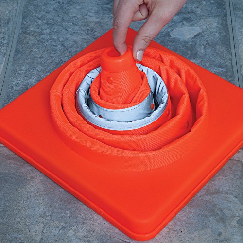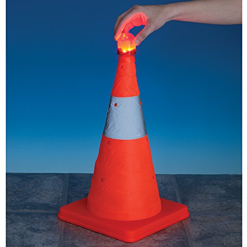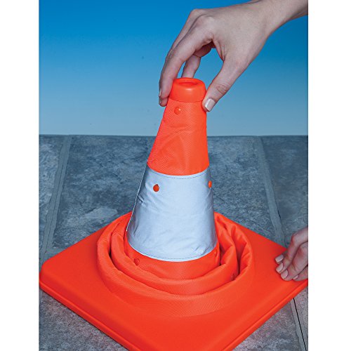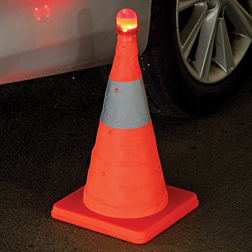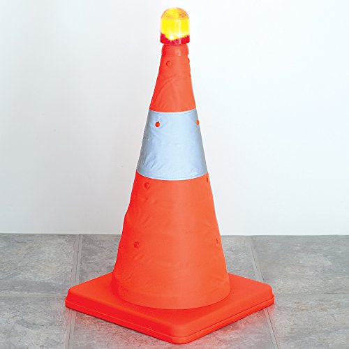 Bits and Pieces - Flourescent Orange LED Warning Traffic Cone - Work Area Protection Durable Nylon Cone with Reflective Band and LED Lights - Folds Flat for Easy Storage