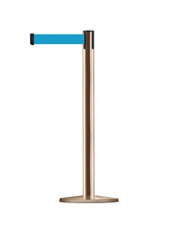 Tensabarrier 889U-2P-2P-MAX-NO-L3X-C - Polished Brass Post, 2" Wide, 13' Length Light Blue Belt , 38" Height, 2.5" Wide, 156" Length