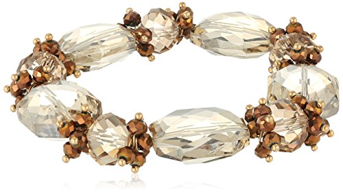 1928 Jewelry Light Topaz Color and Bronze Faceted Beaded Stretch Bracelet