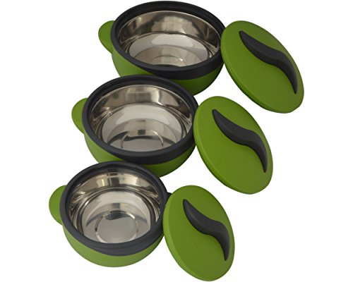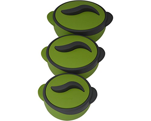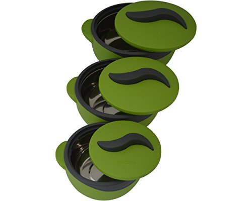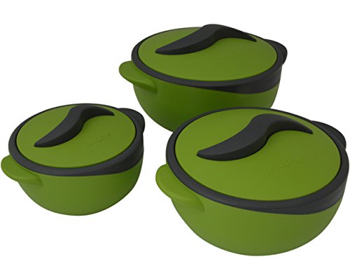 ATC USA Presents - Parisa Caserole 3 Piece Thermo Dish Hot or Cold Casserole Serving Bowls in full color by Pinnacle (GREEN)